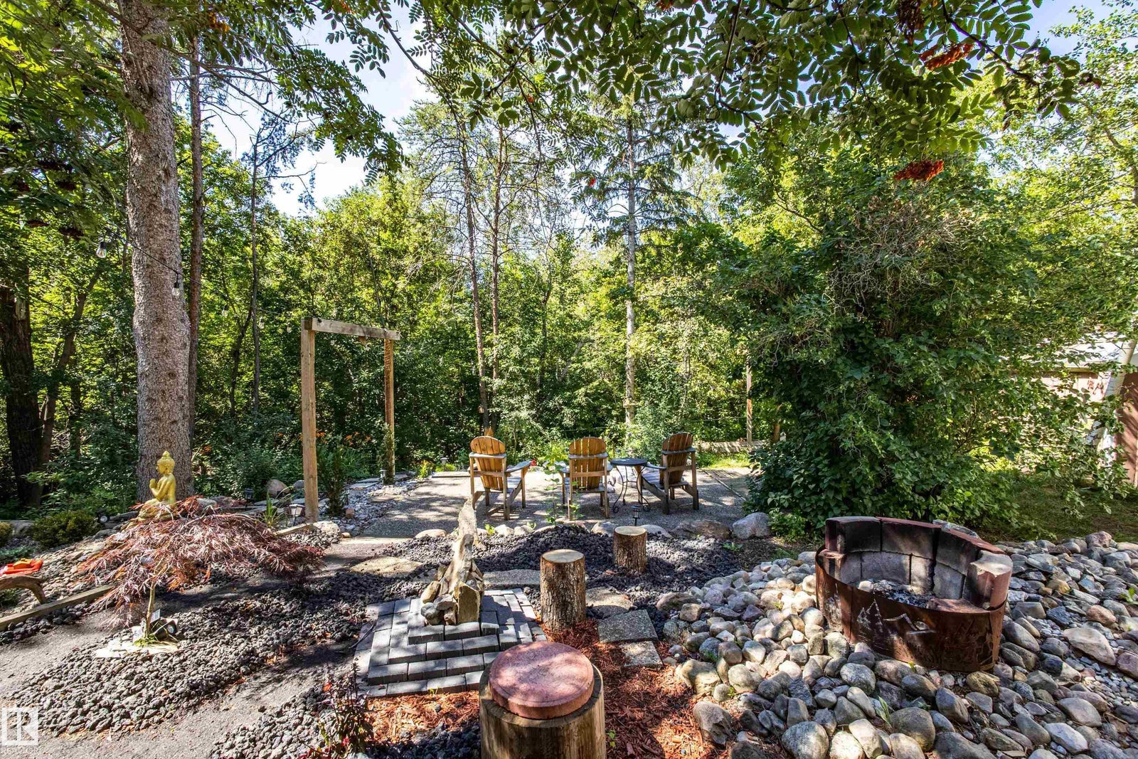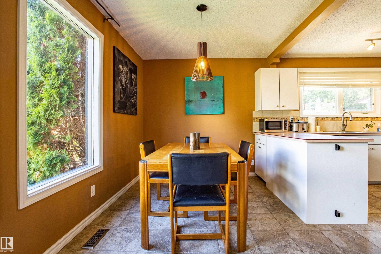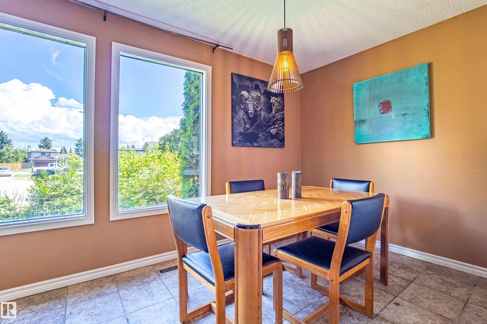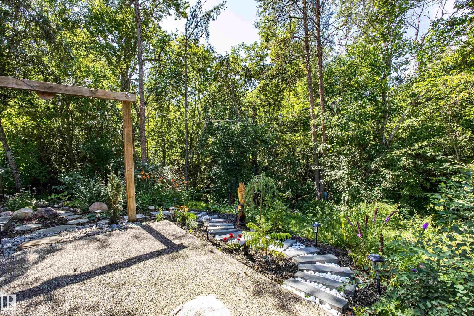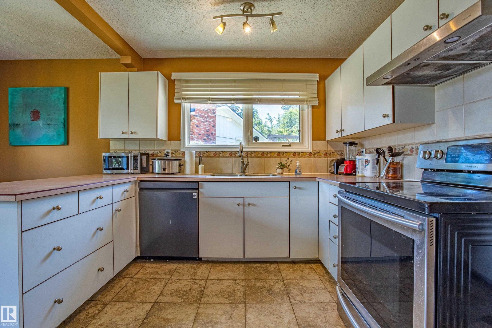 LARGE PIE LOT, WITH PRIVATE YARD BACKING ONTO RAVINE! Located on a quiet crescent location with mature trees and tons of privacy, great for entertaining or enjoying nature! FULLY FINISHED 3-level split, with hardwood flooring upstairs, wood burning fireplace, plenty of windows and light! Upstairs you will find two bedrooms and master bedroom with access to deck, and access to 4 pc main bath. Main floor features large living room, bright kitchen and dining area! Third level of this 3 level split offers laundry room and 3 pc bath as well as a large family room that would be a great kids playroom, gym or additional bedroom. Heated double detached garage is 22x20. Everyday convenience, too: walk to nearby schools, shopping, and amenities, with quick access to Yellowhead Trail and Anthony Henday for easy citywide commuting.