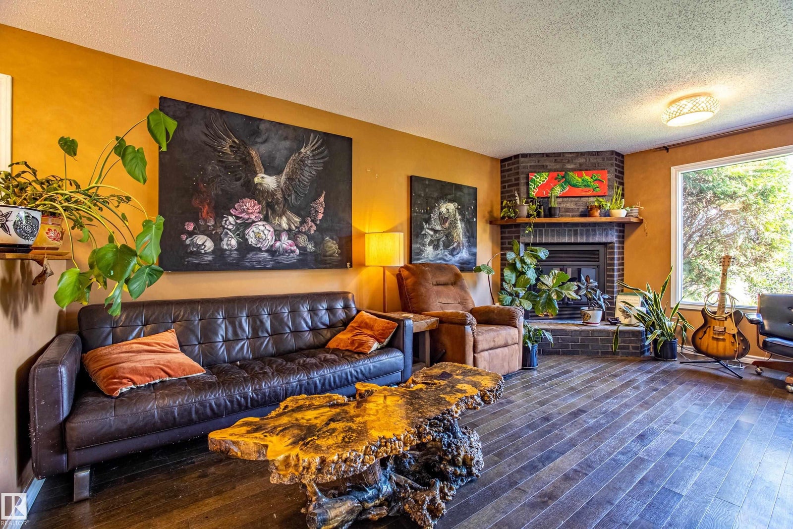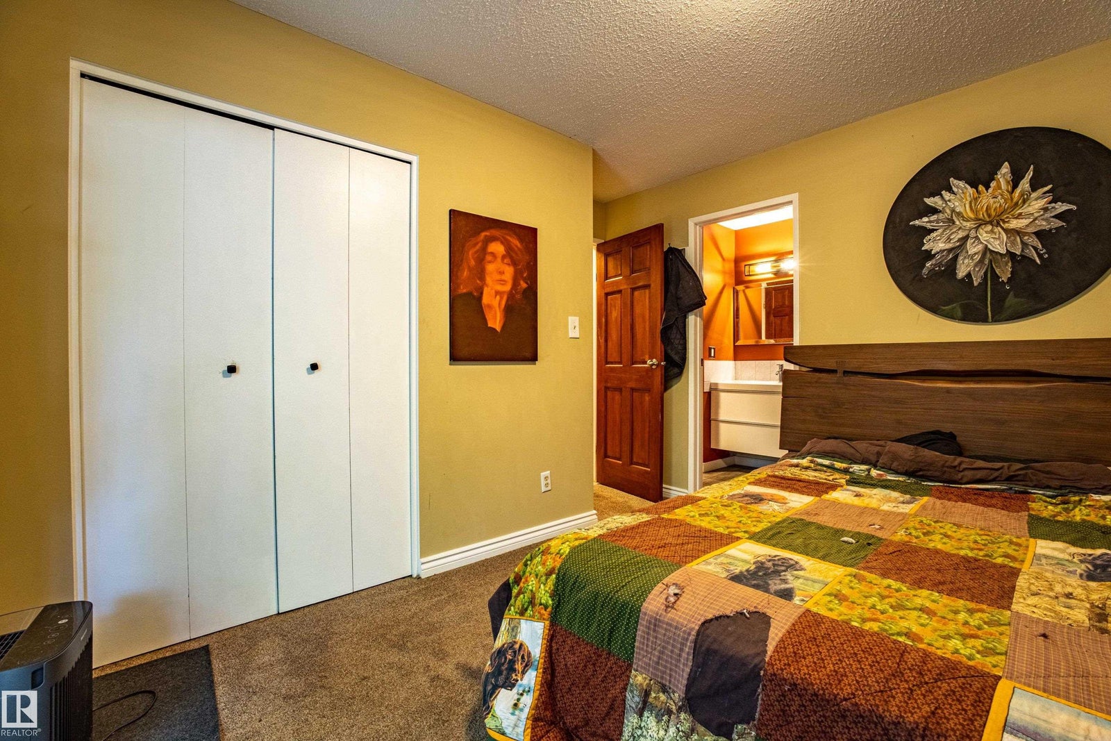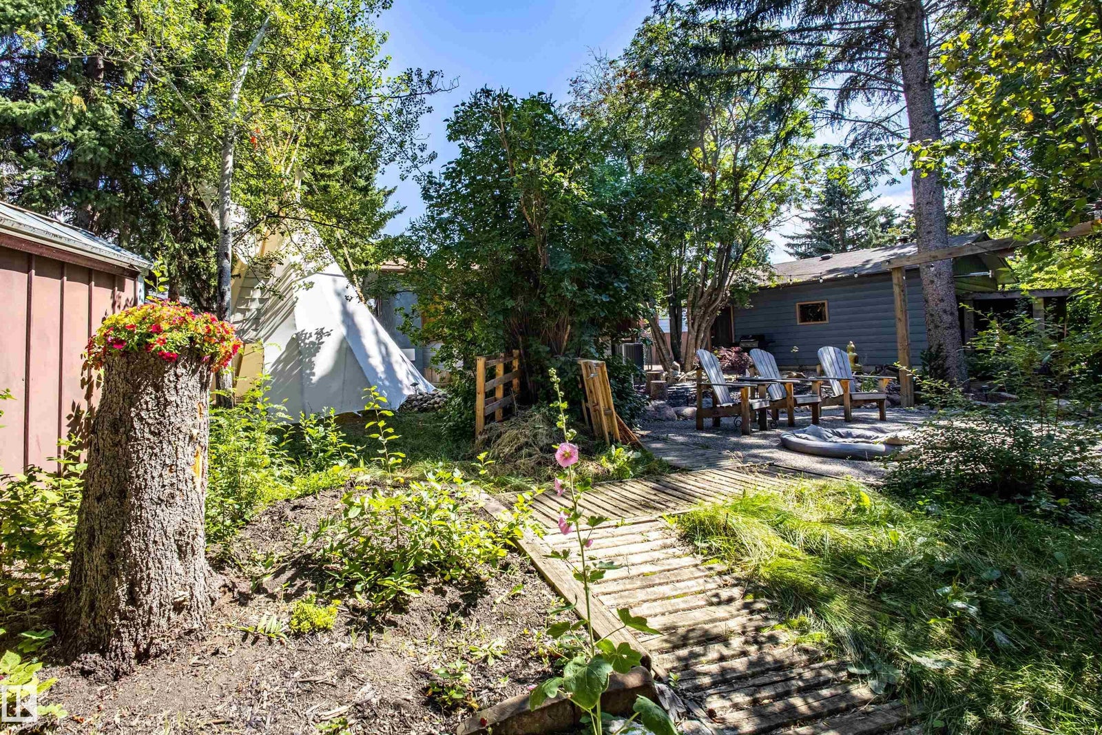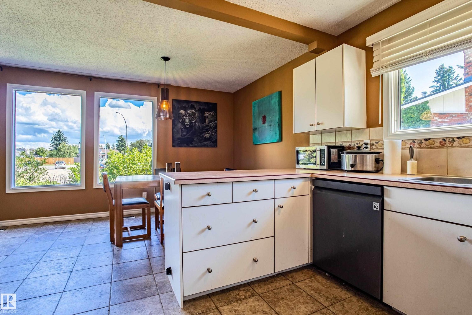 LARGE PIE LOT, WITH PRIVATE YARD BACKING ONTO RAVINE! Located on a quiet crescent location with mature trees and tons of privacy, great for entertaining or enjoying nature! FULLY FINISHED 3-level split, with hardwood flooring upstairs, wood burning fireplace, plenty of windows and light! Upstairs you will find two bedrooms and master bedroom with access to deck, and access to 4 pc main bath. Main floor features large living room, bright kitchen and dining area! Third level of this 3 level split offers laundry room and 3 pc bath as well as a large family room that would be a great kids playroom, gym or additional bedroom. Heated double detached garage is 22x20. Everyday convenience, too: walk to nearby schools, shopping, and amenities, with quick access to Yellowhead Trail and Anthony Henday for easy citywide commuting.
