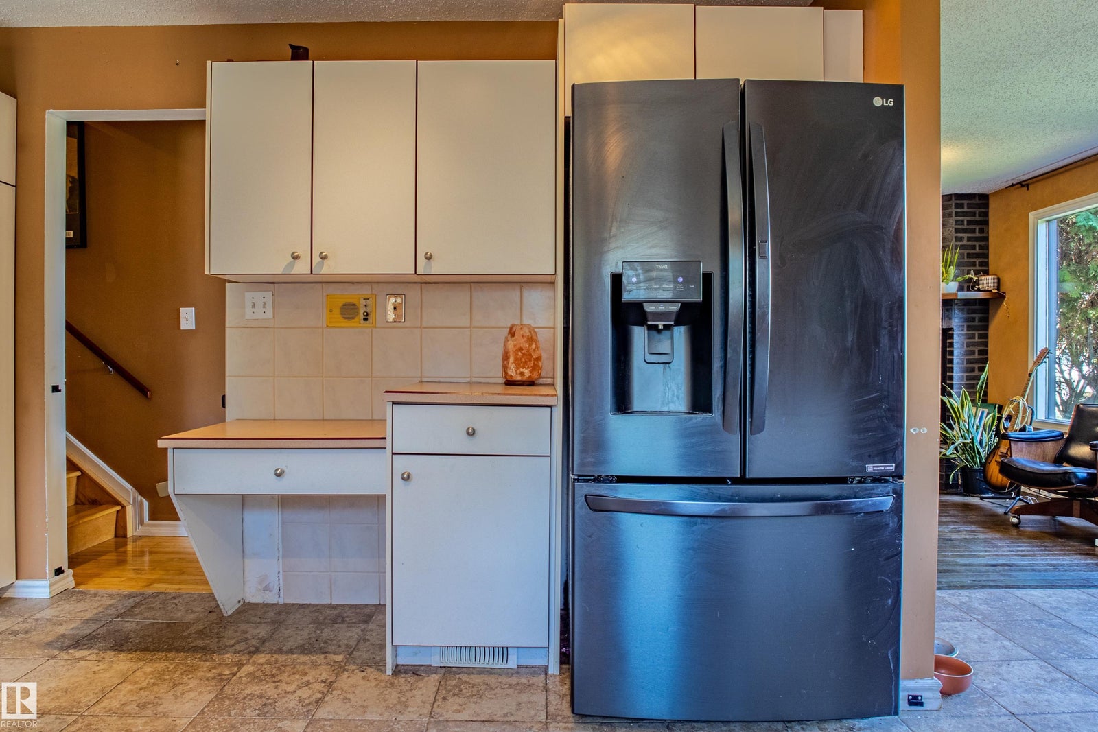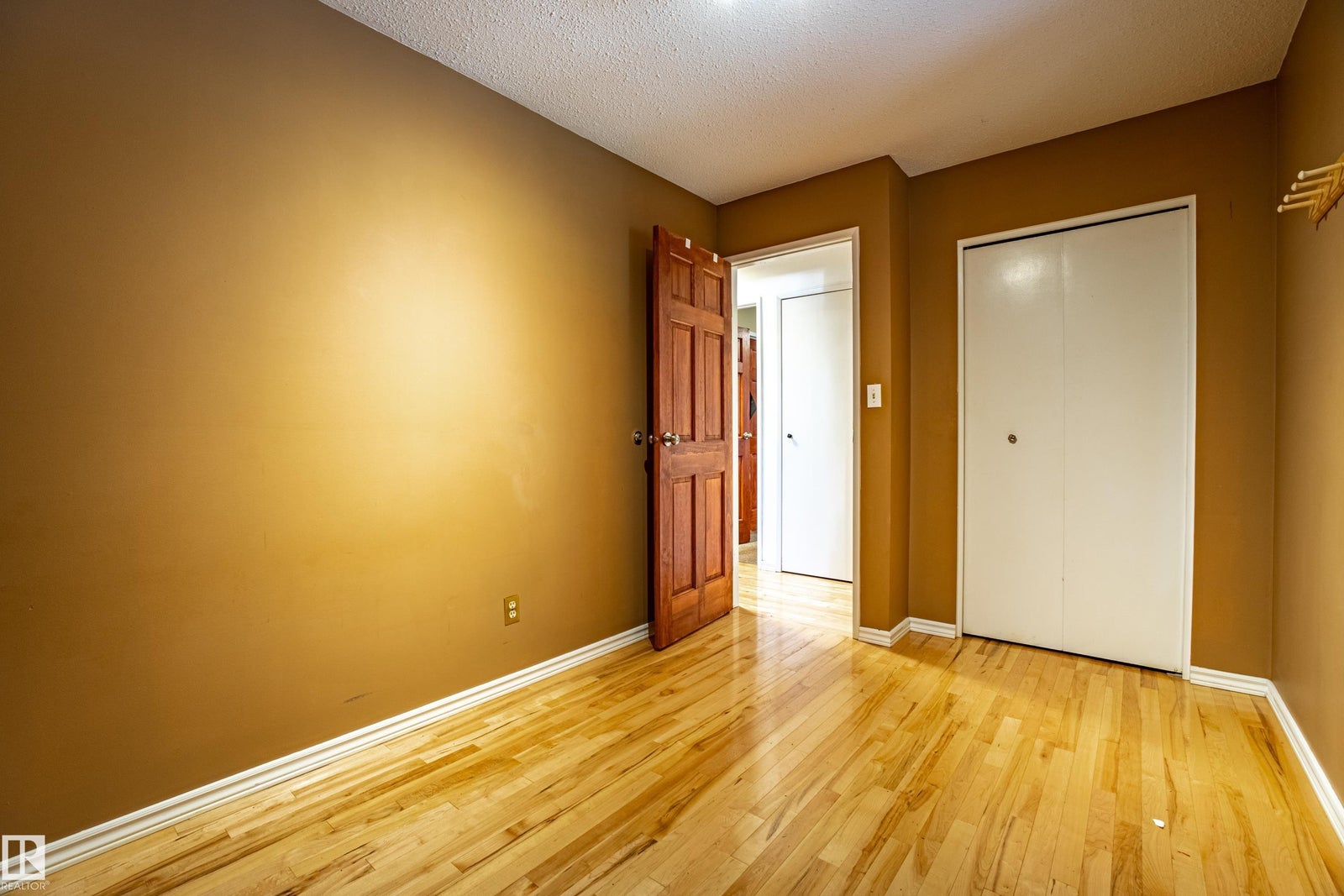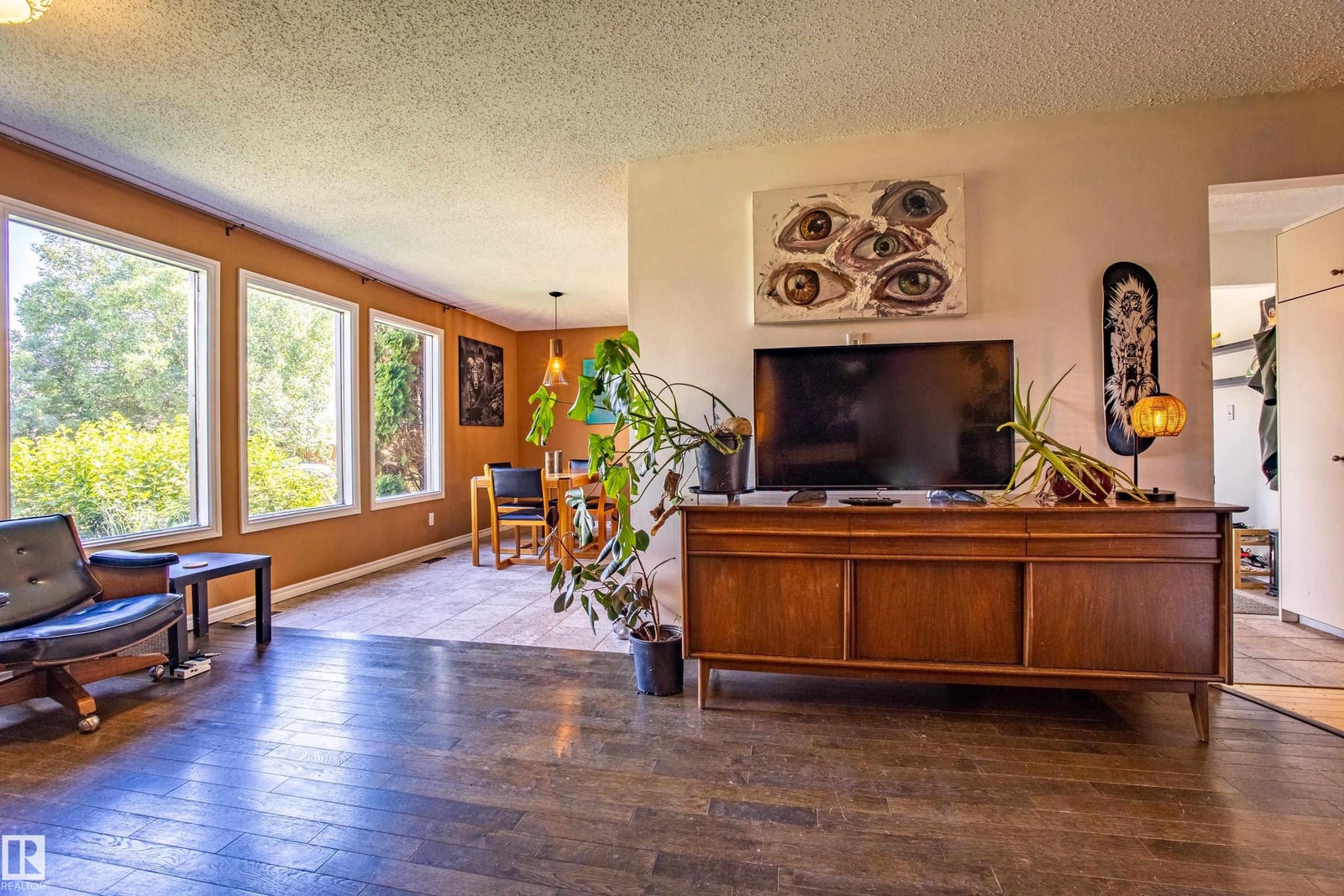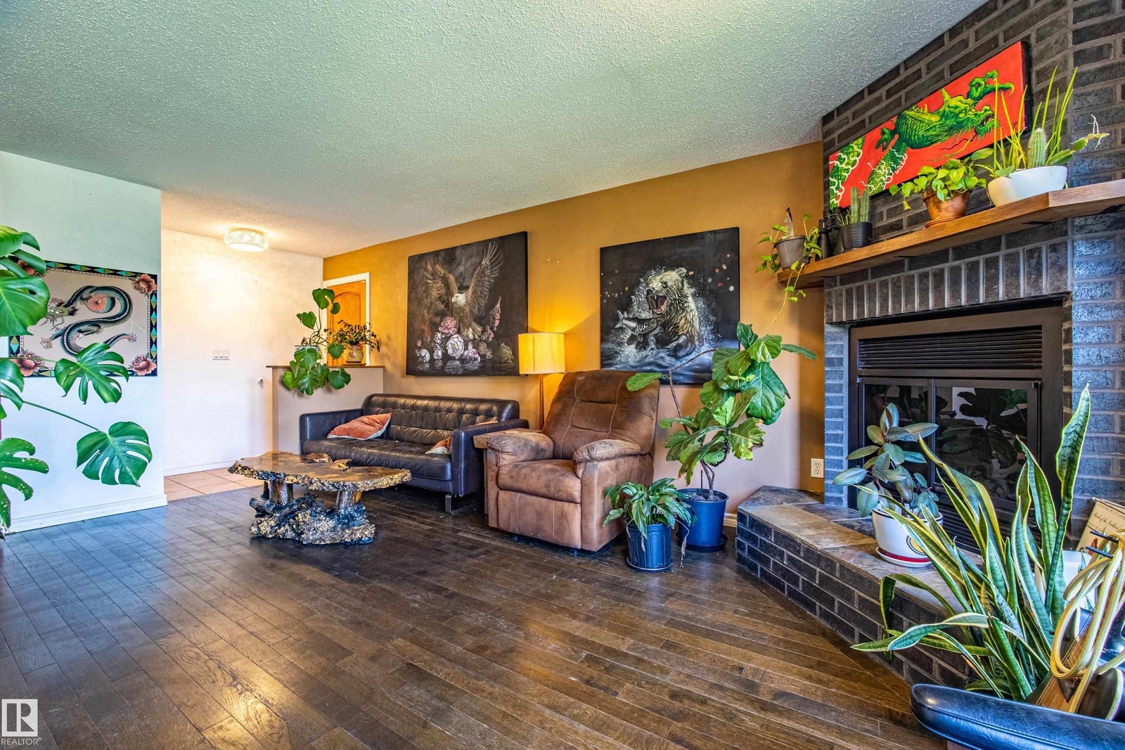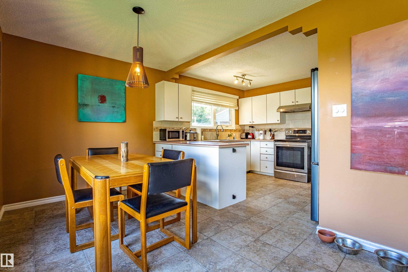 LARGE PIE LOT, WITH PRIVATE YARD BACKING ONTO RAVINE! Located on a quiet crescent location with mature trees and tons of privacy, great for entertaining or enjoying nature! FULLY FINISHED 3-level split, with hardwood flooring upstairs, wood burning fireplace, plenty of windows and light! Upstairs you will find two bedrooms and master bedroom with access to deck, and access to 4 pc main bath. Main floor features large living room, bright kitchen and dining area! Third level of this 3 level split offers laundry room and 3 pc bath as well as a large family room that would be a great kids playroom, gym or additional bedroom. Heated double detached garage is 22x20. Everyday convenience, too: walk to nearby schools, shopping, and amenities, with quick access to Yellowhead Trail and Anthony Henday for easy citywide commuting.
