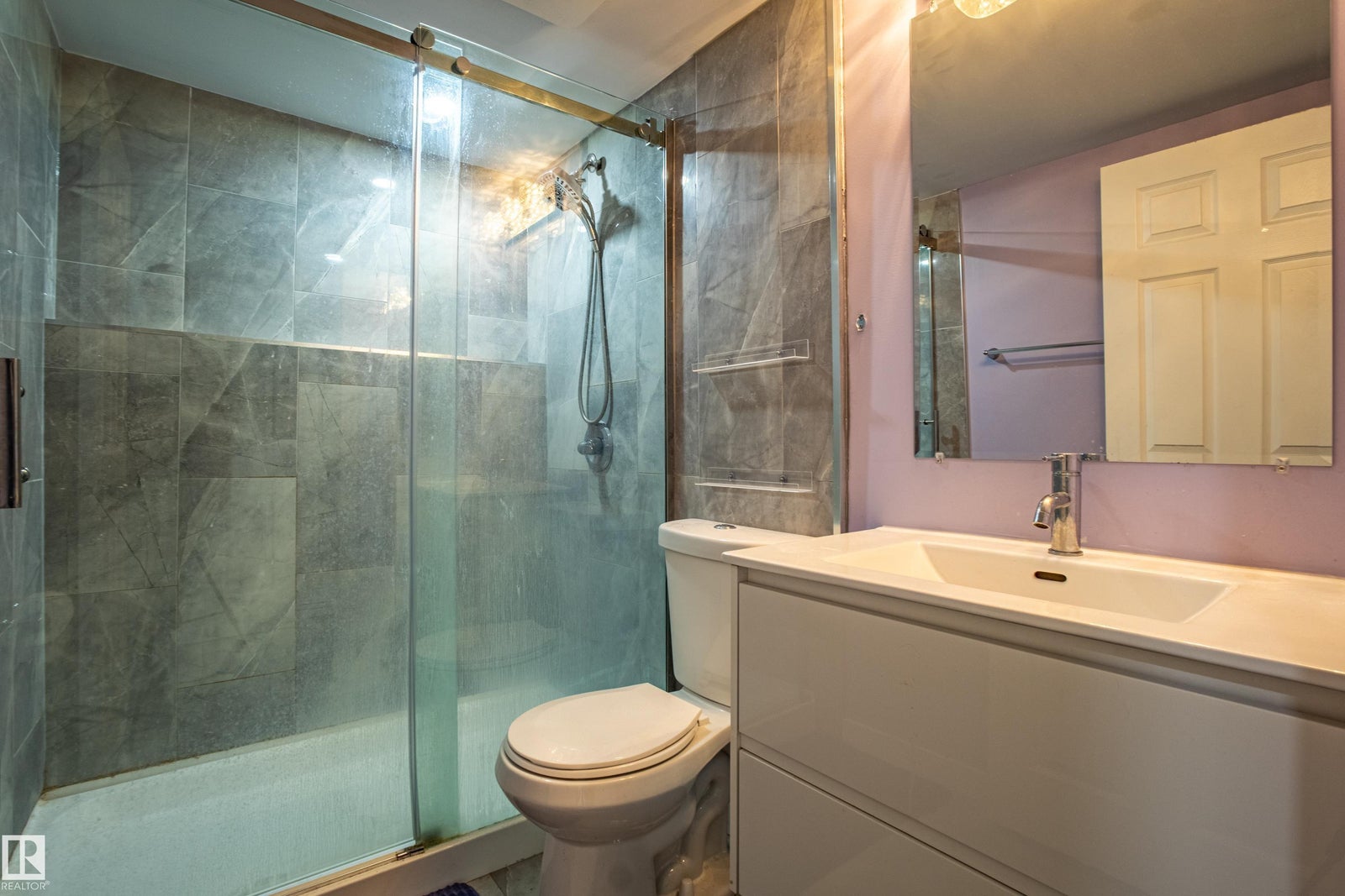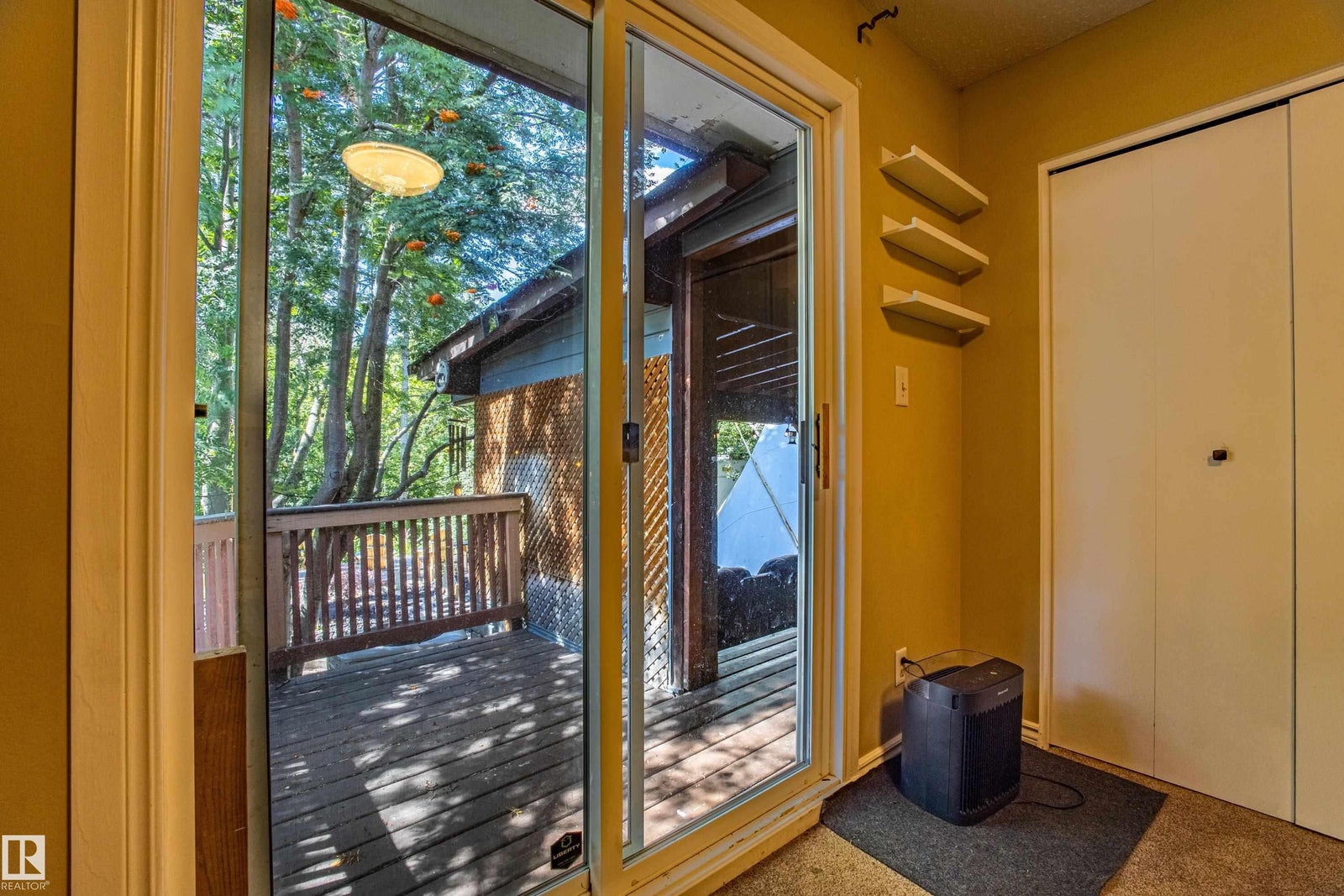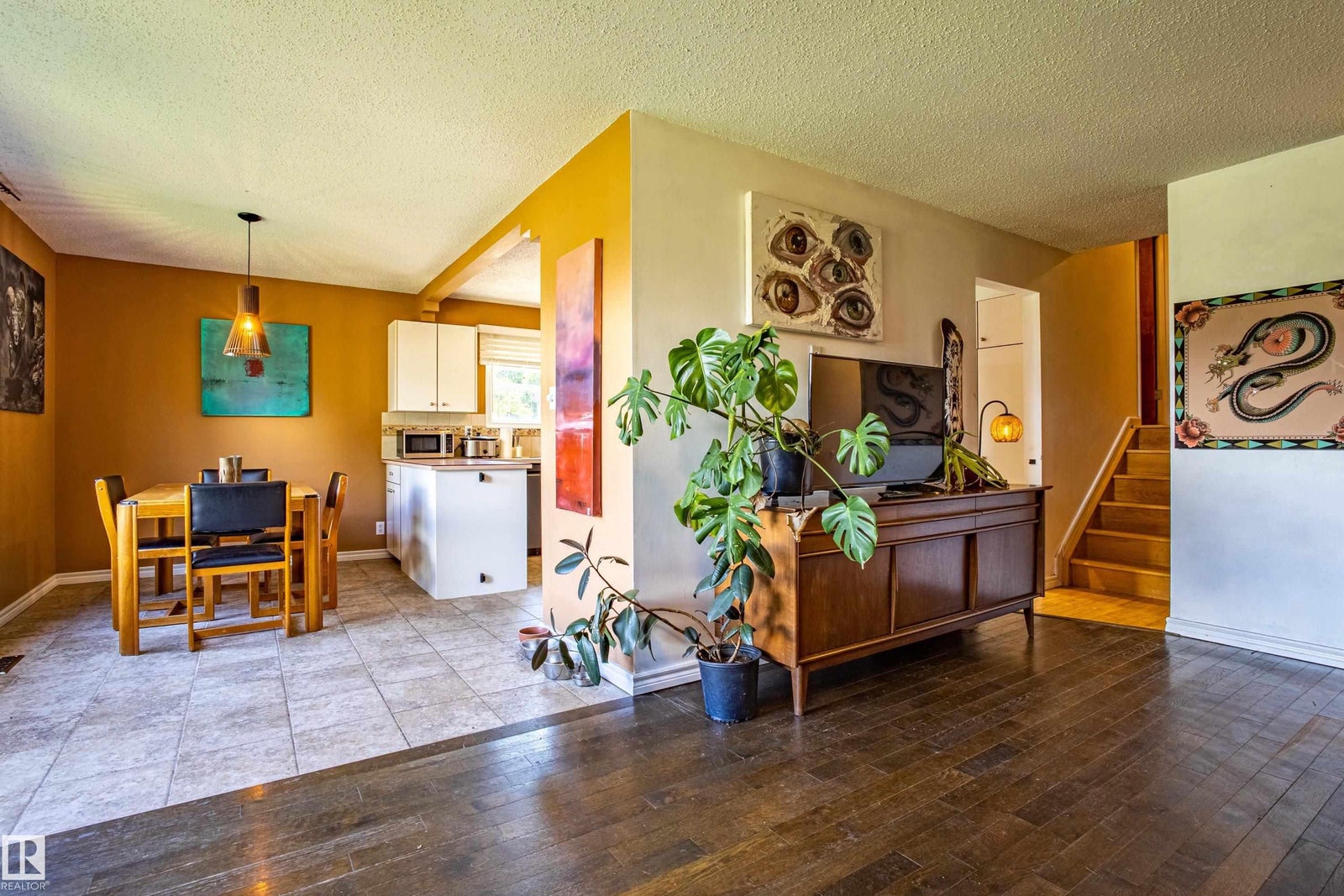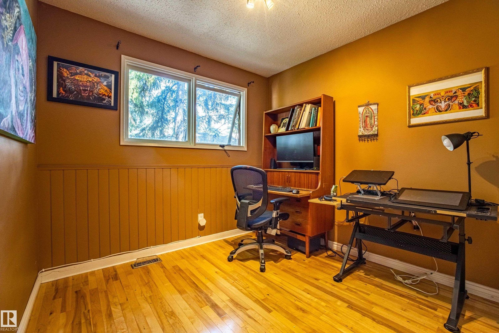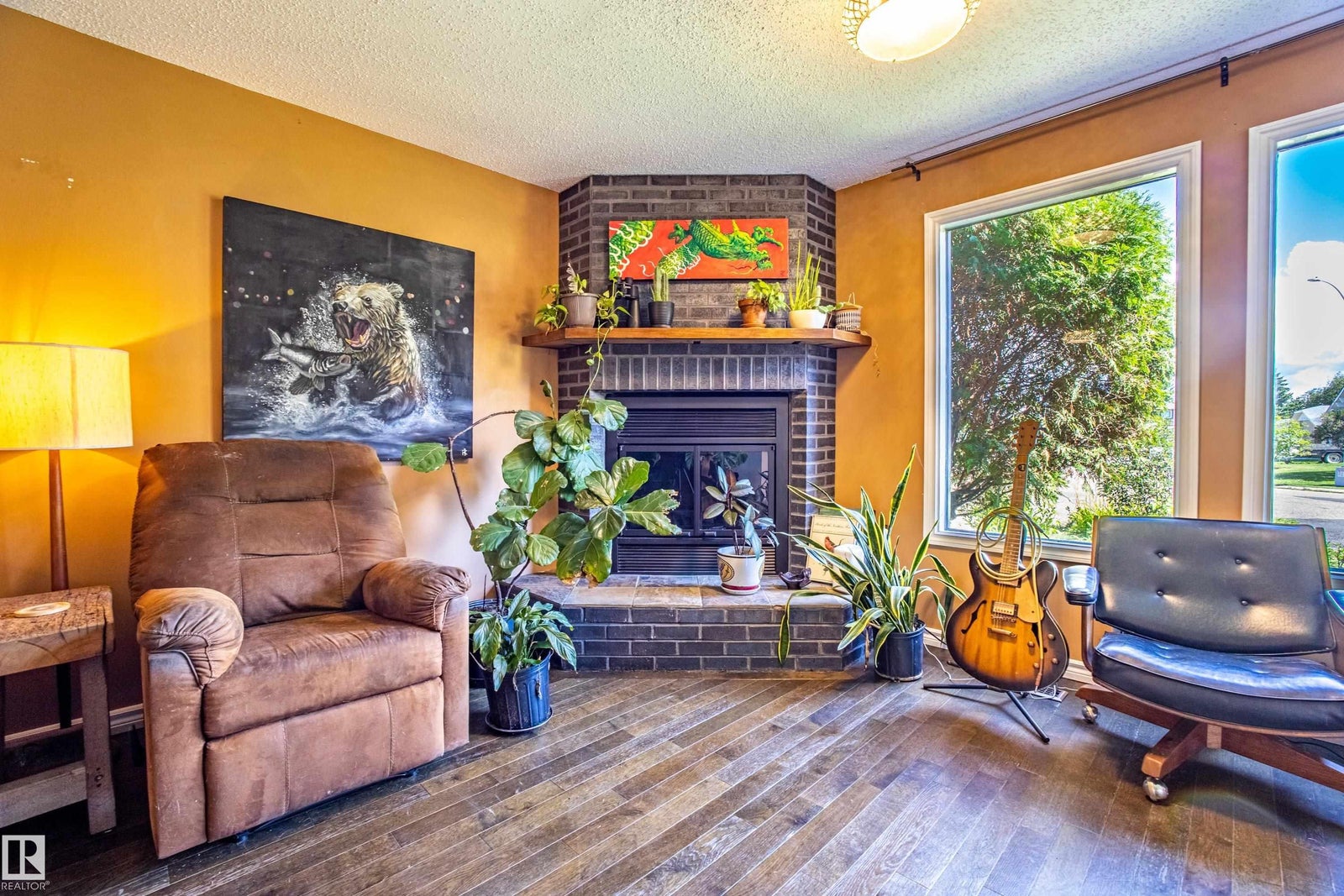 LARGE PIE LOT, WITH PRIVATE YARD BACKING ONTO RAVINE! Located on a quiet crescent location with mature trees and tons of privacy, great for entertaining or enjoying nature! FULLY FINISHED 3-level split, with hardwood flooring upstairs, wood burning fireplace, plenty of windows and light! Upstairs you will find two bedrooms and master bedroom with access to deck, and access to 4 pc main bath. Main floor features large living room, bright kitchen and dining area! Third level of this 3 level split offers laundry room and 3 pc bath as well as a large family room that would be a great kids playroom, gym or additional bedroom. Heated double detached garage is 22x20. Everyday convenience, too: walk to nearby schools, shopping, and amenities, with quick access to Yellowhead Trail and Anthony Henday for easy citywide commuting.