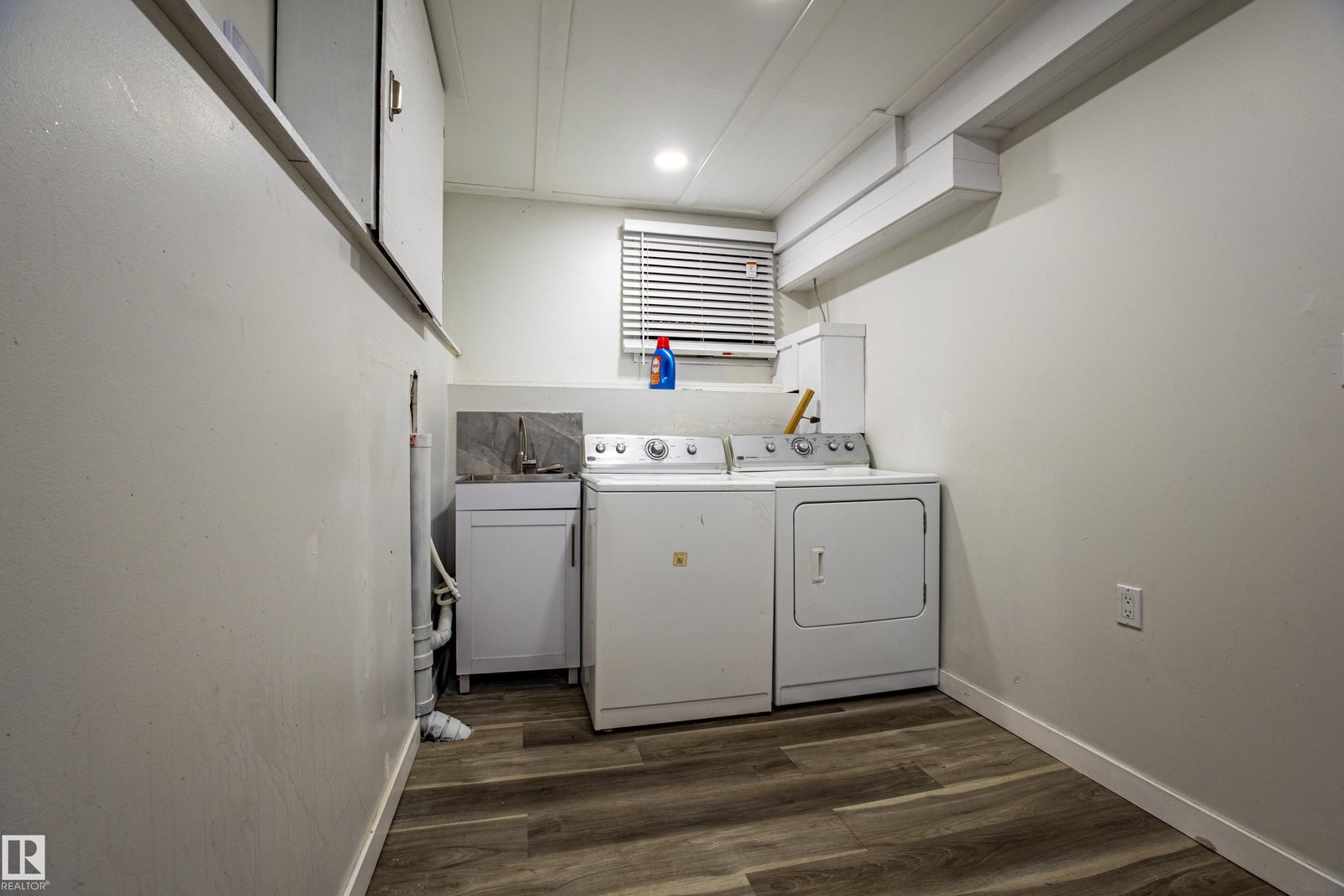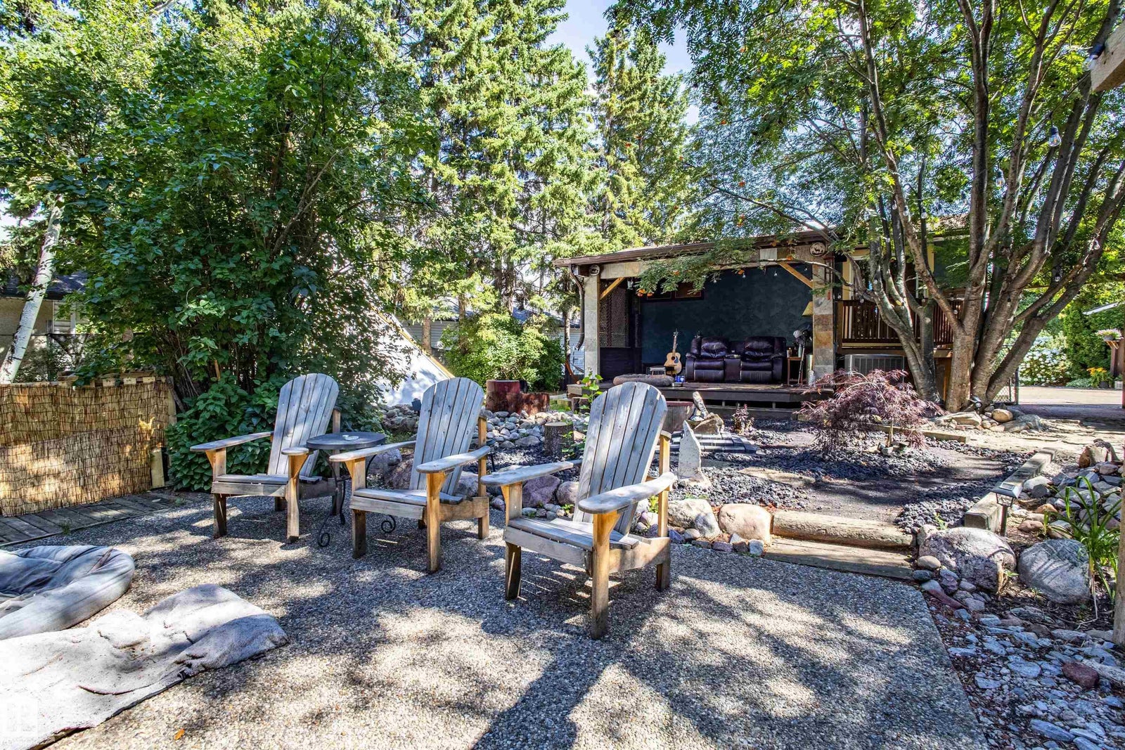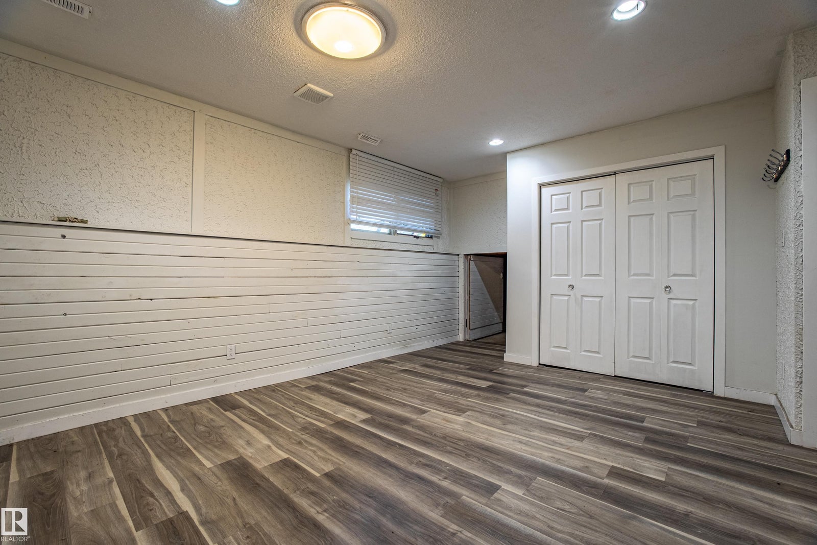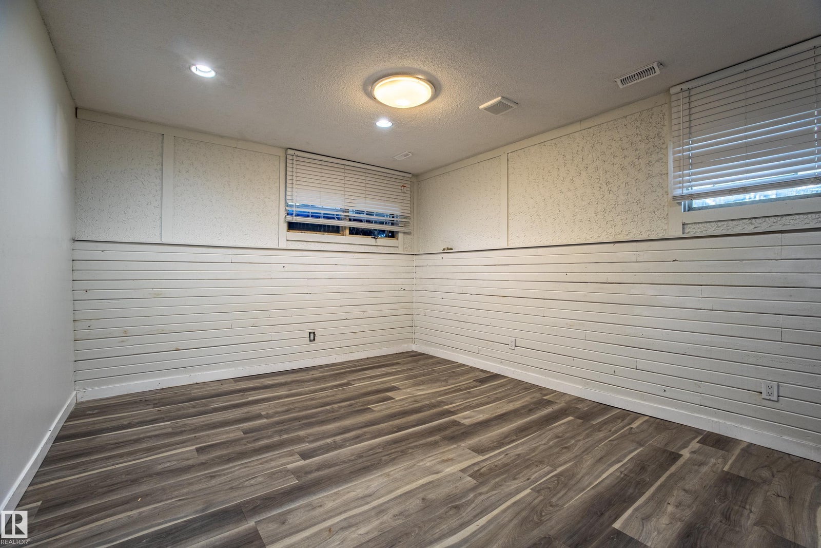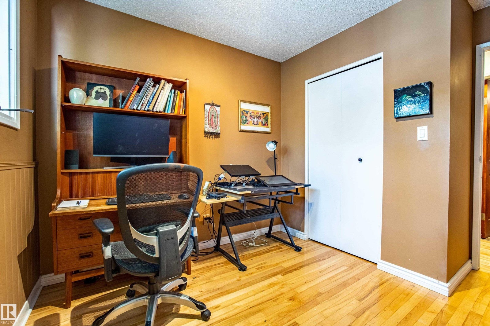 LARGE PIE LOT, WITH PRIVATE YARD BACKING ONTO RAVINE! Located on a quiet crescent location with mature trees and tons of privacy, great for entertaining or enjoying nature! FULLY FINISHED 3-level split, with hardwood flooring upstairs, wood burning fireplace, plenty of windows and light! Upstairs you will find two bedrooms and master bedroom with access to deck, and access to 4 pc main bath. Main floor features large living room, bright kitchen and dining area! Third level of this 3 level split offers laundry room and 3 pc bath as well as a large family room that would be a great kids playroom, gym or additional bedroom. Heated double detached garage is 22x20. Everyday convenience, too: walk to nearby schools, shopping, and amenities, with quick access to Yellowhead Trail and Anthony Henday for easy citywide commuting.